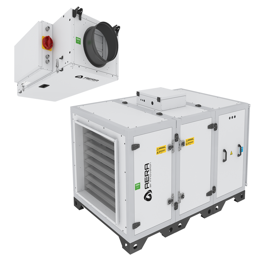MISTRAL Aura – 4.000 ila 8.000 m³/h hava debisi sağlayan, geniş hacim uygulamalarına yönelik, esnek montaj imkânı ve güçlü performans sunan yüksek kapasiteli taze hava cihazları.